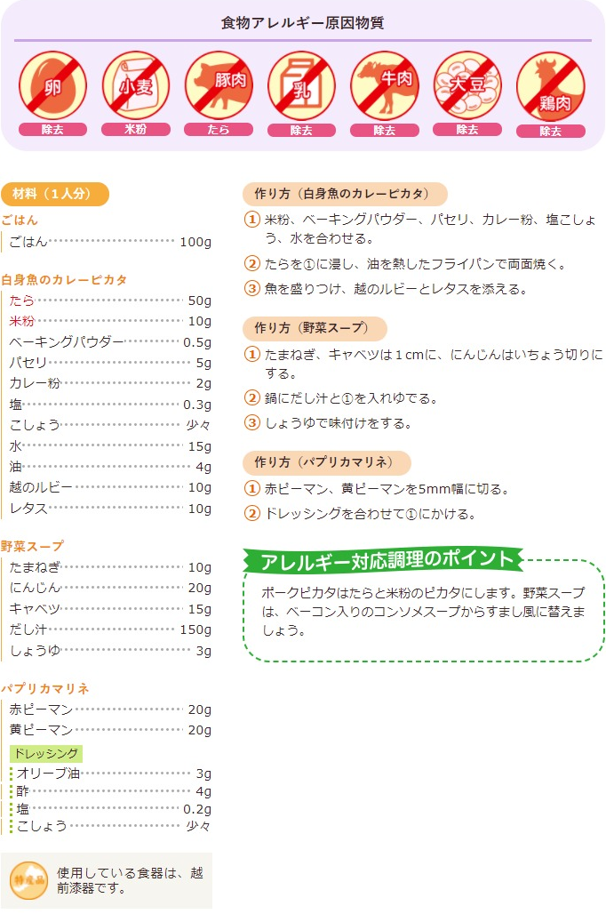白身魚のカレーピカタ、野菜スープ、パプリカマリネ | ふく育ポータルサイト