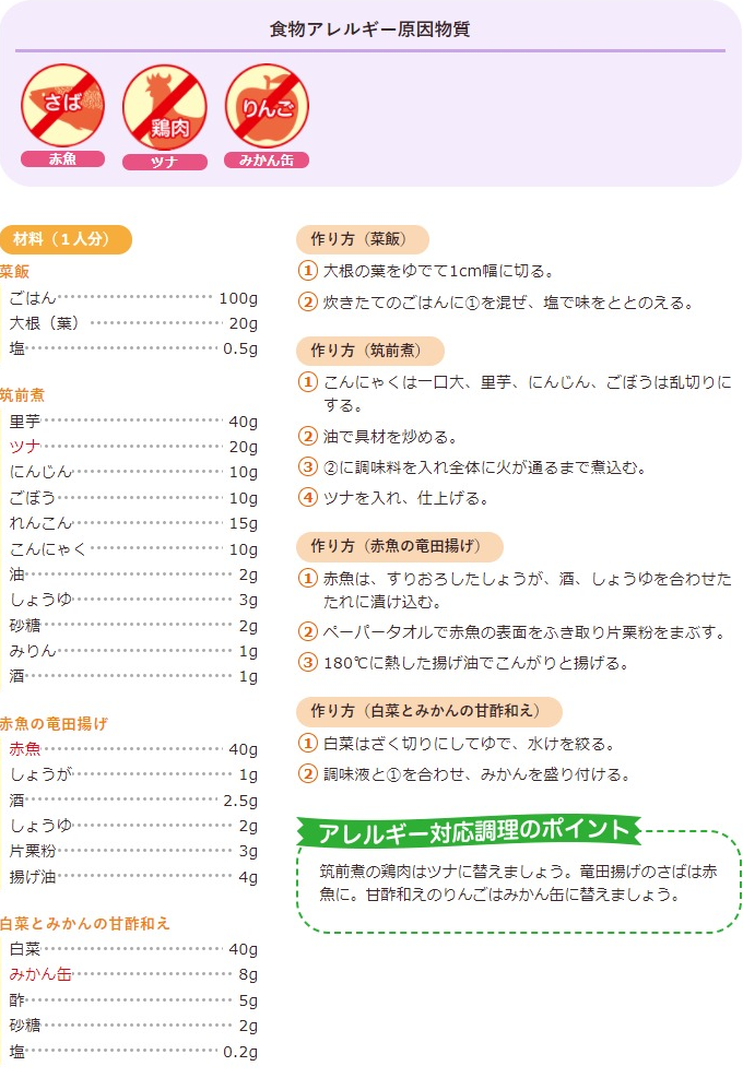 菜飯、筑前煮、赤魚の竜田揚げ、白菜とみかんの甘酢和え | ふく育ポータルサイト