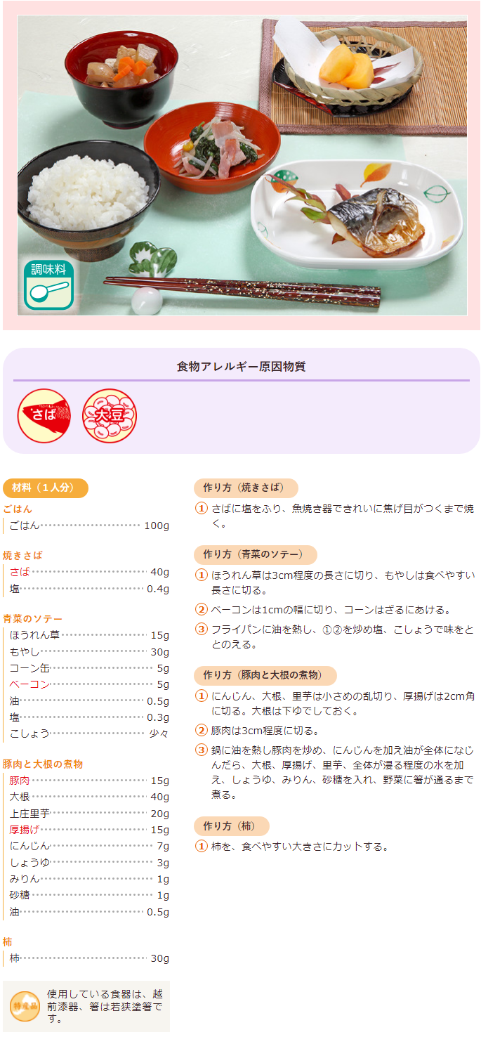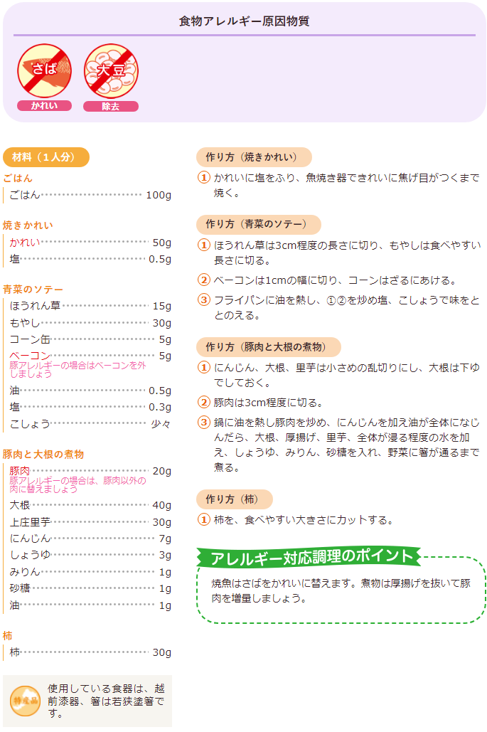 焼きかれい、青菜のソテー、豚肉と大根の煮物、柿 | ふく育ポータルサイト