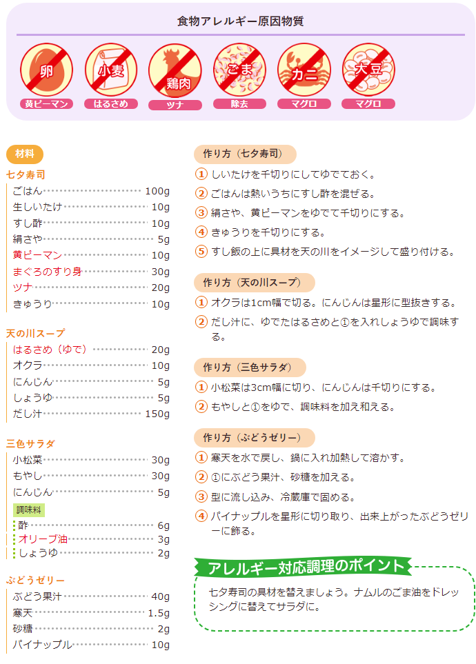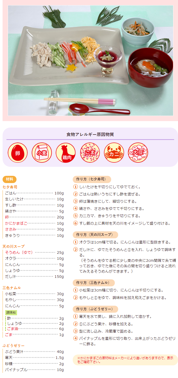 七夕寿司、天の川スープ、三色ナムル、ゼリー | ふく育ポータルサイト